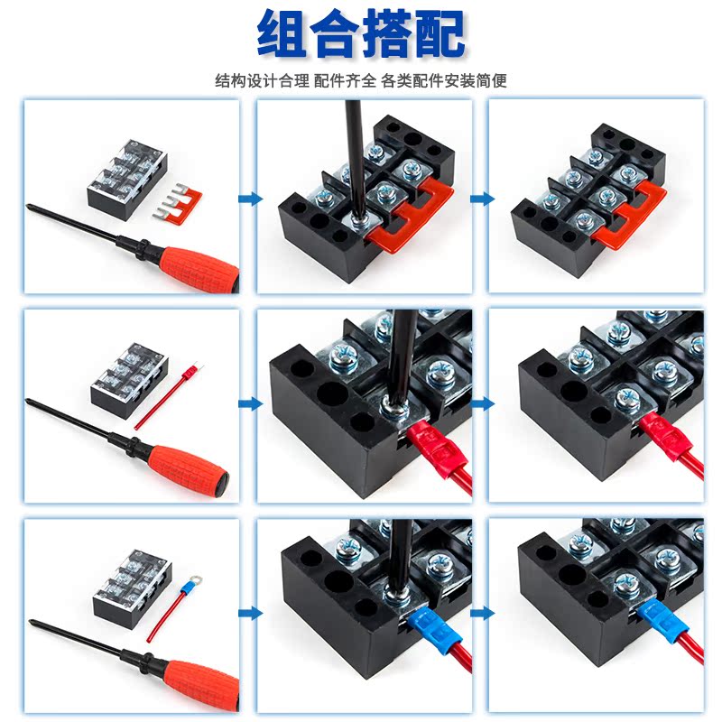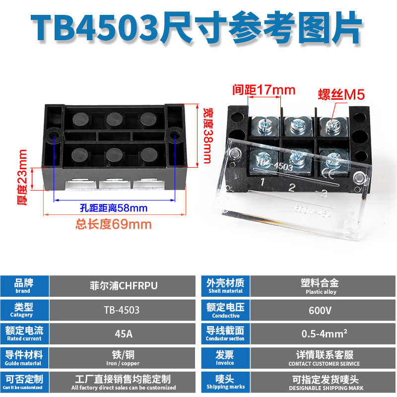 Manufacturer direct wiring terminal TB4503 45A stationary terminal row 3 position post head 50 only fit without slip wire