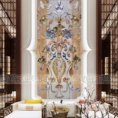European-style screen art glass aisle entrance background wall partition Shoe cabinet glass carved tempered glass vase