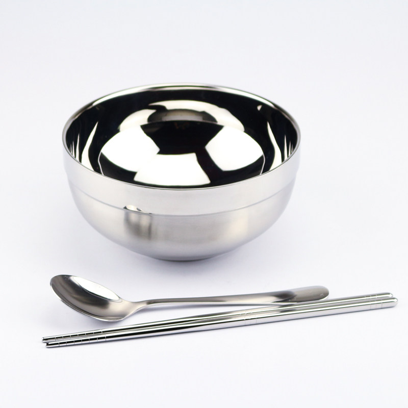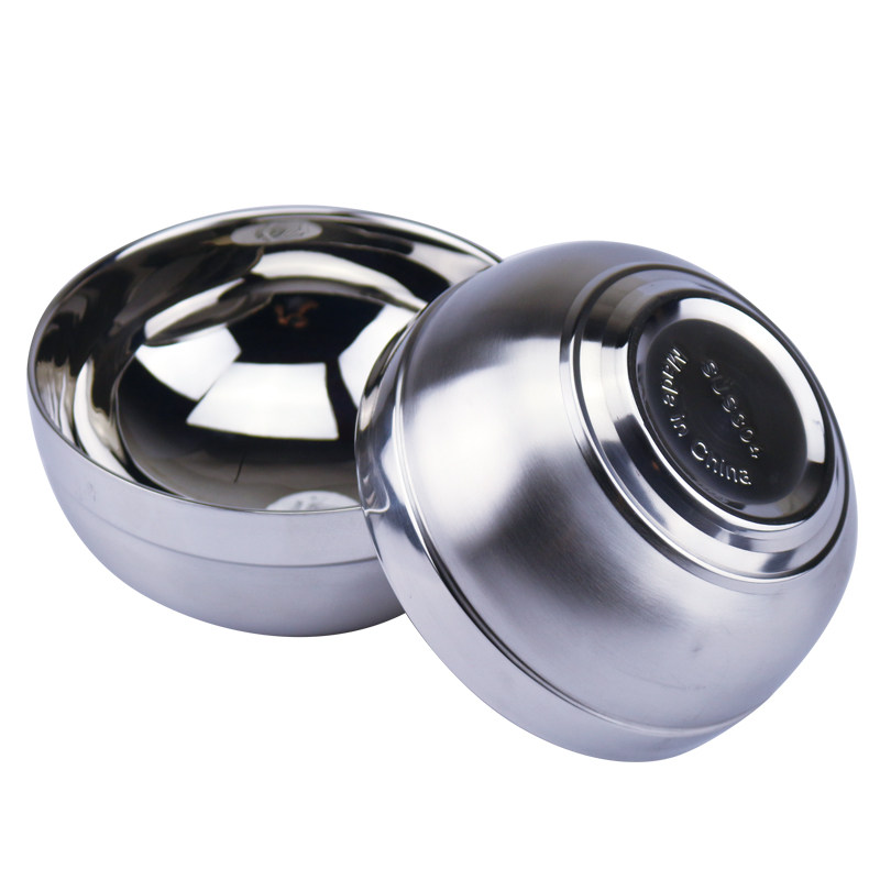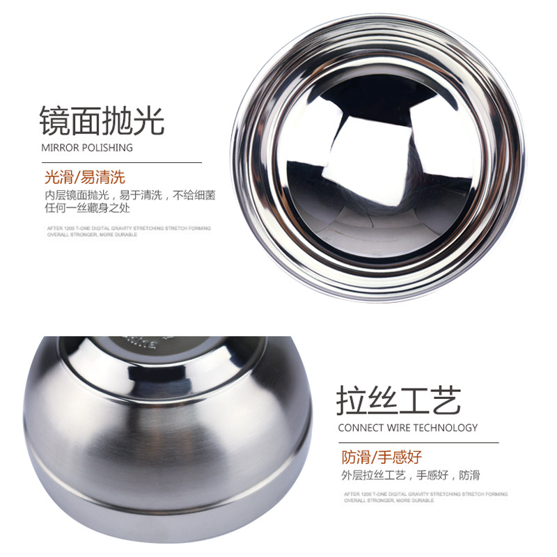 Thickened 304 stainless steel bowl Household double insulation anti-scalding anti-drop children's tableware adult large rice bowl set