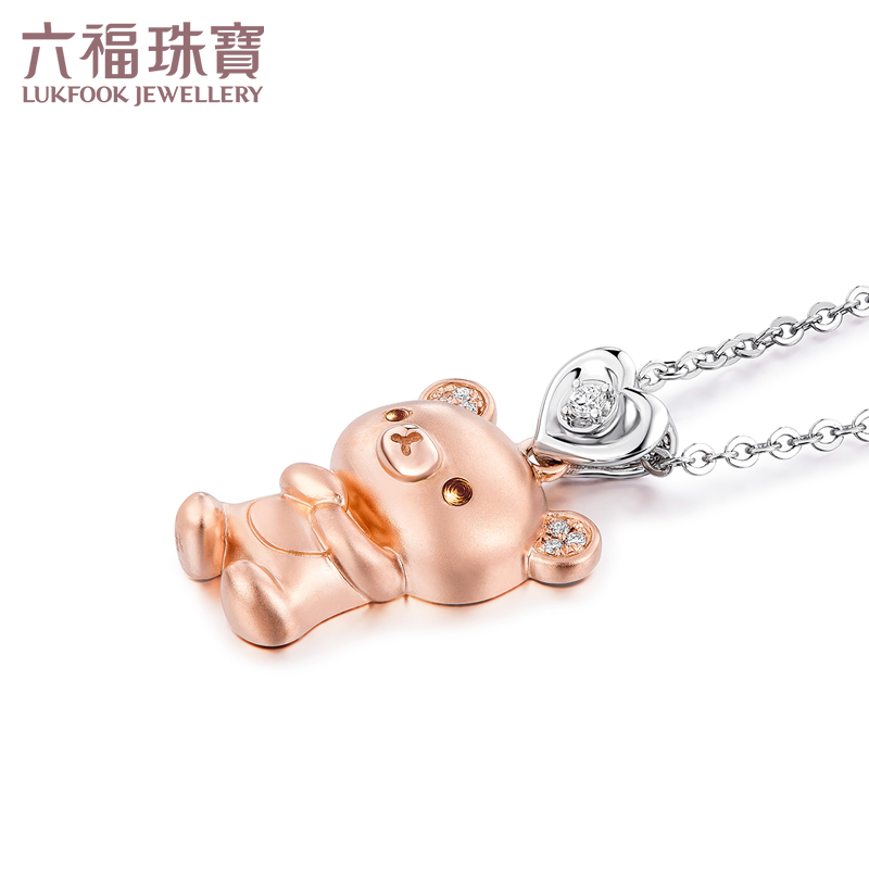 Lukfook Jewelry Easy Bear 18K gold diamond pendant female color gold diamond pendant gift without chain RK27606