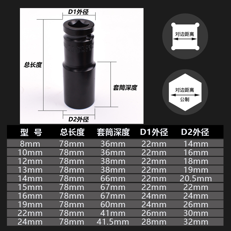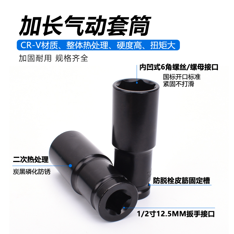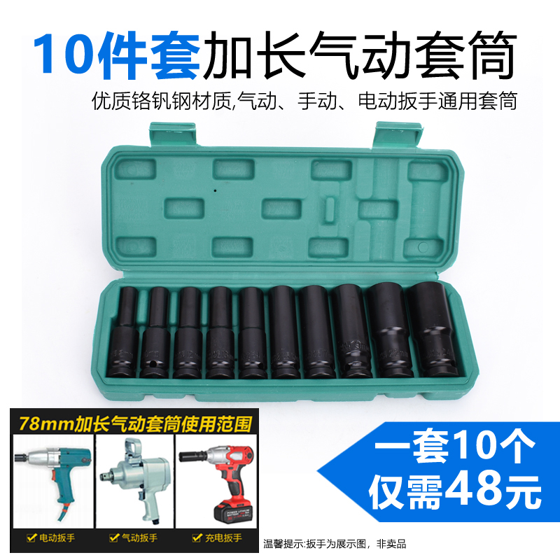 Lengthened black small pneumatic wrench sleeve special length 78mm thickened chrome vanadium steel pneumatic sleeve head big quick connector