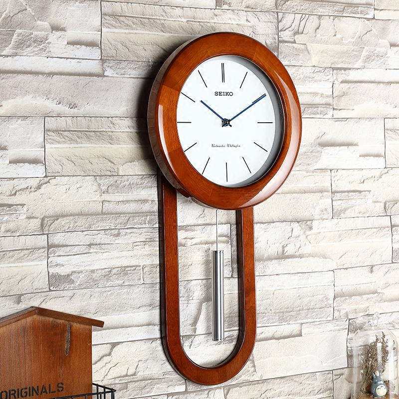 Japanese Seiko Music News Hanging Pendulum hanging clock Real wood minimalist fashion Living room Art hanging clock QXH057B