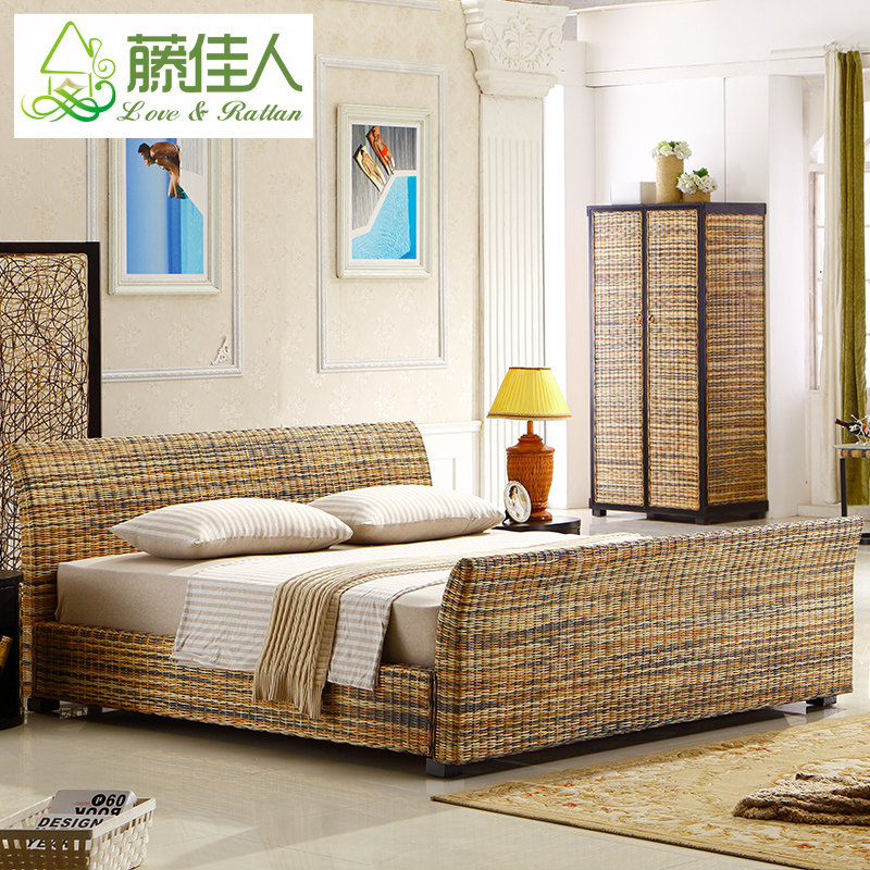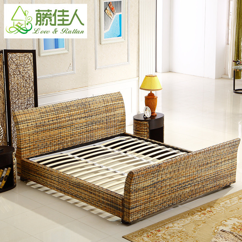 Rattan bed hotel suite rattan furniture bedroom real rattan rattan 1 8m double bed rattan rattan bed TD