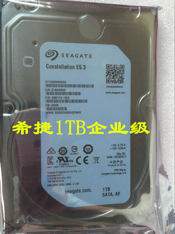 Seagate 1T ES 3 ST1000NM0033 SATA 6Gb monitoring 1T7200 rpm 128M enterprise hard drive