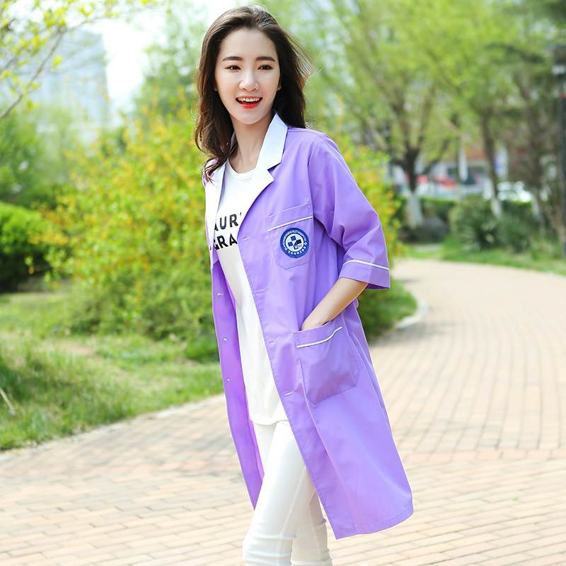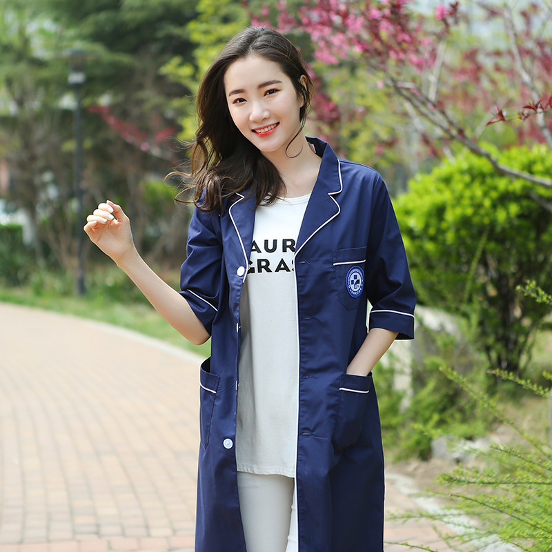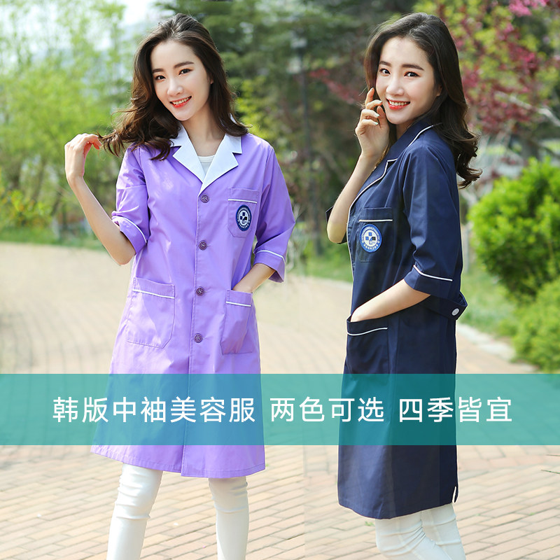 Semi-permanent embroidery Korean version of white coat work clothes Doctor clothes Middle sleeve beauty clothes Makeup artist clothing Winter and summer clothes
