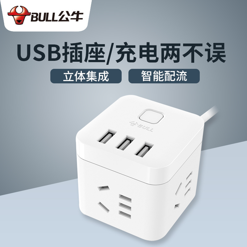 Bull Magic Square Socket Usb Solid Platoon Intelligent U303U Fast Charging Creative Belt Line Vertical Insert 1 5 m