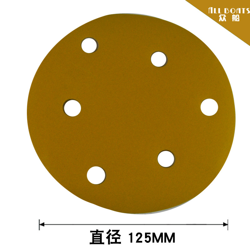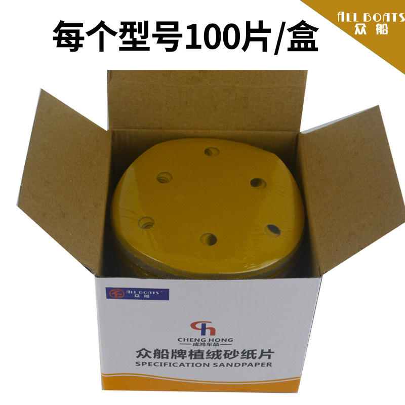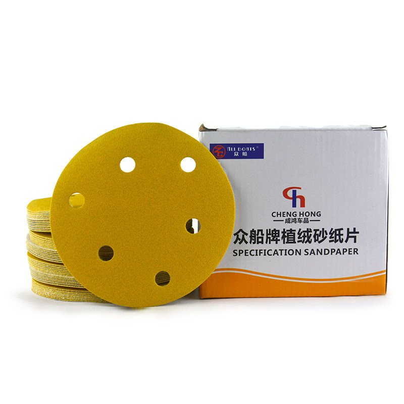 5 inch 6 holes Yellow sand crowdship Flocking Round Sandpaper Sheet Auto Paint Beauty Polished Disc Car Sandpaper Polish