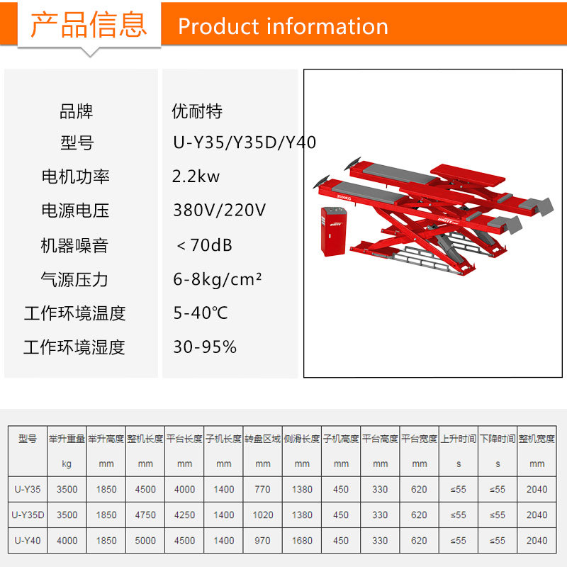 Shanghai YouTent U-Y40 Motor primary and secondary big cut lifter 3D four-wheel positioning special big cut lifter