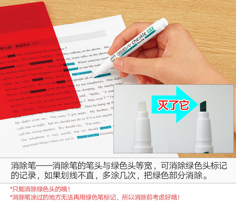 Japan Reputation of Concealed Pen Caps students with reciting endorsements Back English Single-character instrumental to eliminate Fluorescent Pen Mark Notes Pen with Shielded Board Portable
