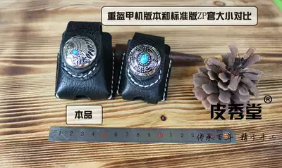 Substitute zippo fire Machine cover Zhibao head layer cowhide armor machine turquoise leather handmade leather case