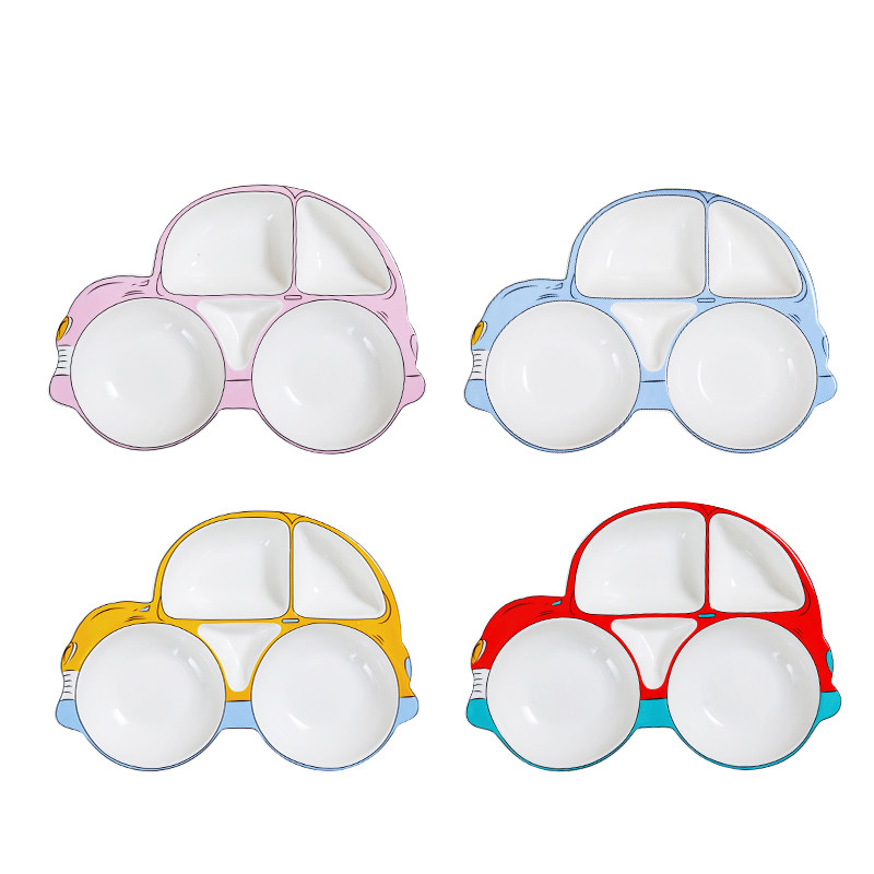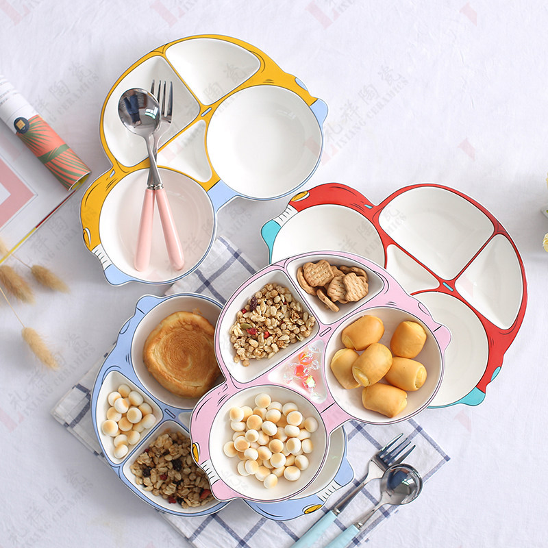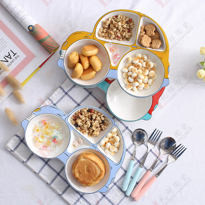 Personalized ceramic tableware plate cartoon children's ceramic divided plate cute breakfast plate separated snack plate fruit plate