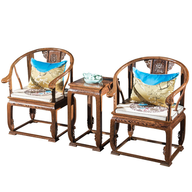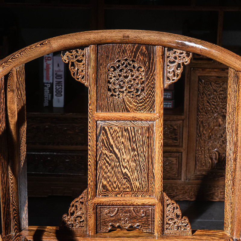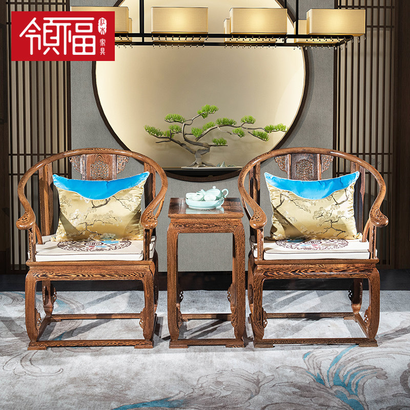 Lingfu Mahogany Chicken Wing Wooden Circle Chair Taishi Chair New Chinese Style Chair Leisure Chair Back Chair Palace Chair Three-piece Set