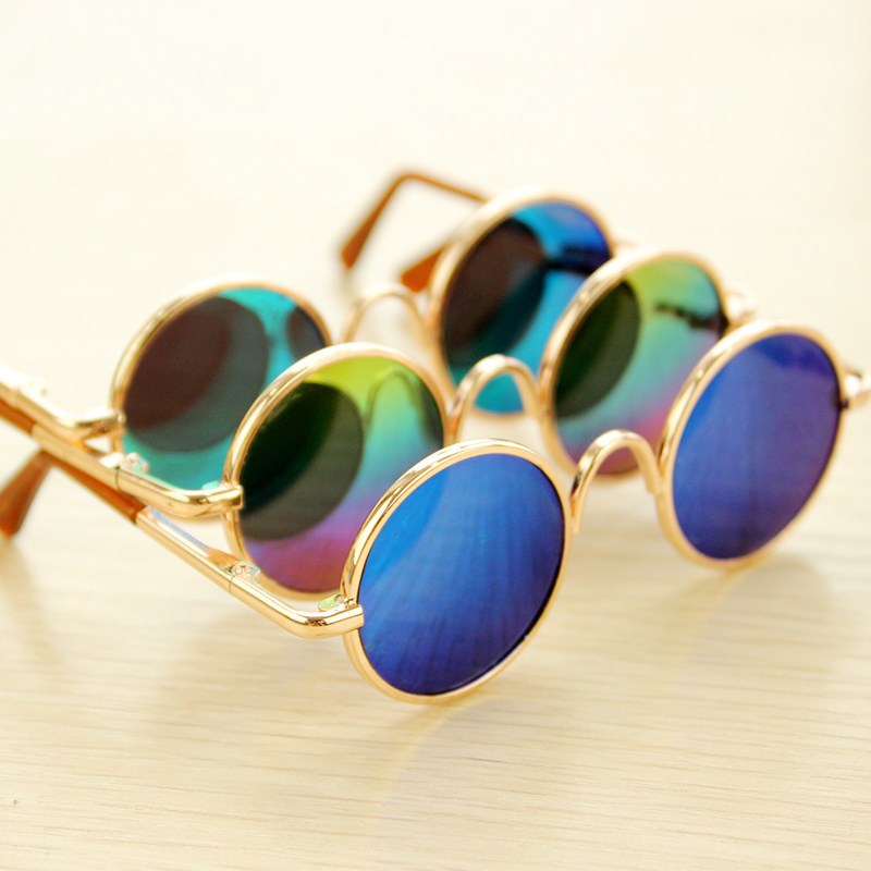GREEN BLUE RAINBOW COLOR GOLD FRAME SUNGLASSES BLACK Transparent mirror only suitable for small dogs and cats oh