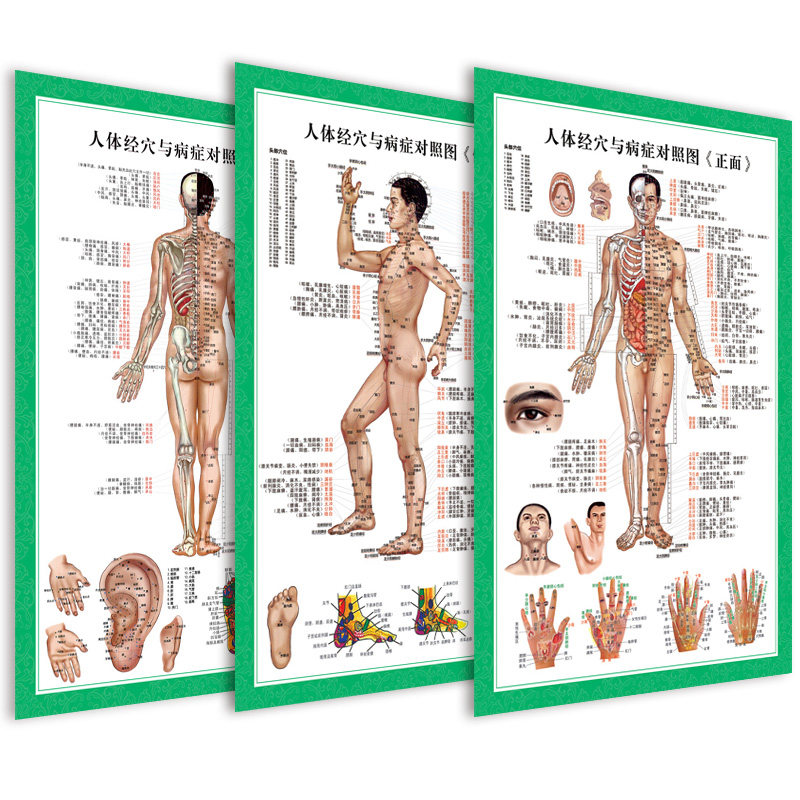 Transcupoint disease control chart (conjoined figure) Green transcommunicular disease control chart (3 photos on the front and back sides) Green point disease control chart (siamese map) Control chart for point diseases (3 photos on the front and back side)