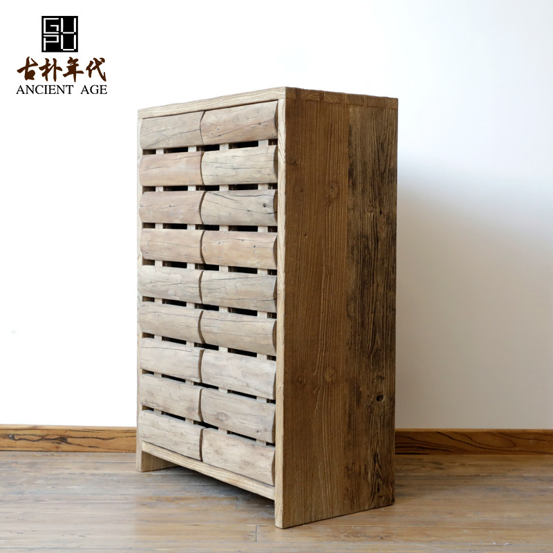 Ancient age Elm shoe cabinet solid wood pastoral furniture old door board log shoe rack multi-purpose portal cabinet