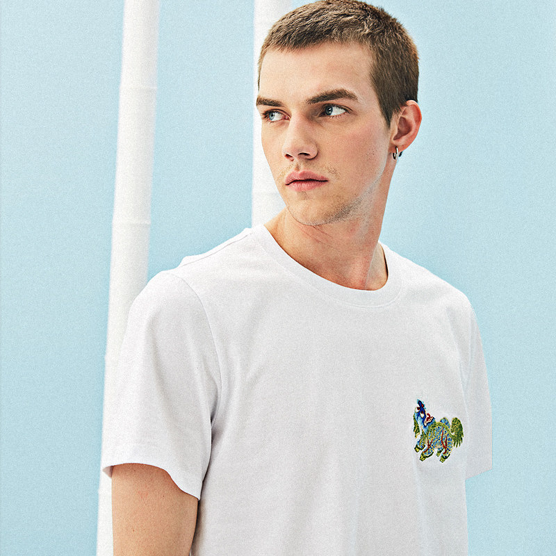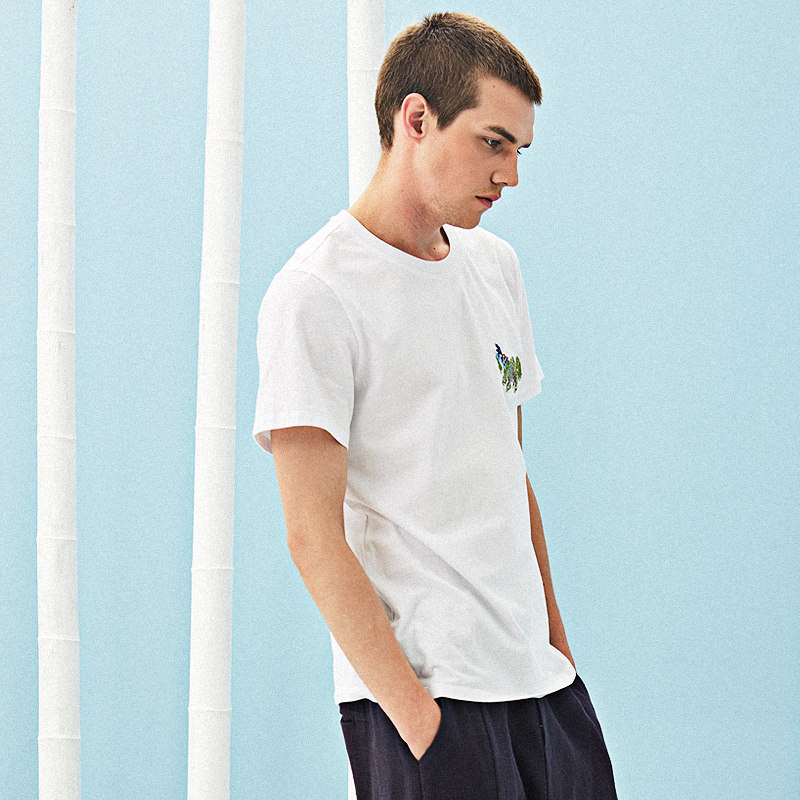 (Ruibutang)Huanlin Chinese style retro embroidery design pure cotton short-sleeved T-shirt simple half-sleeve men