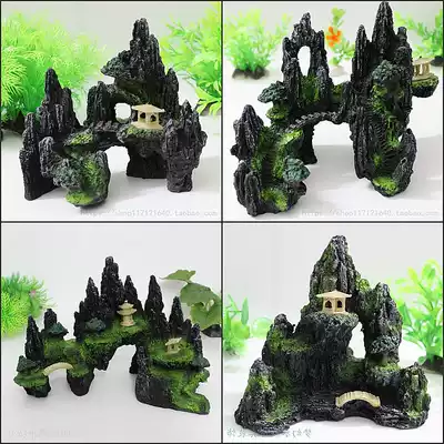 New mouth fish tank simulation Rockery stone decoration style variety resin material Mountain Pavilion small Bridge