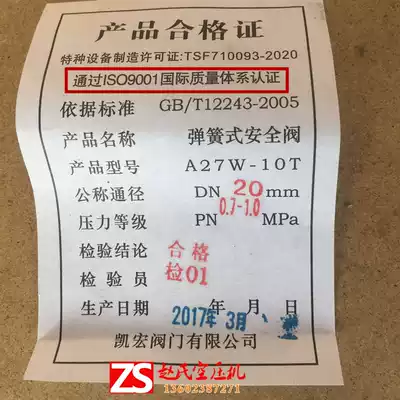 Gas storage tank safety valve spring safety valve A27W-10T safety valve pressure 0 7-1MP air compressor accessories