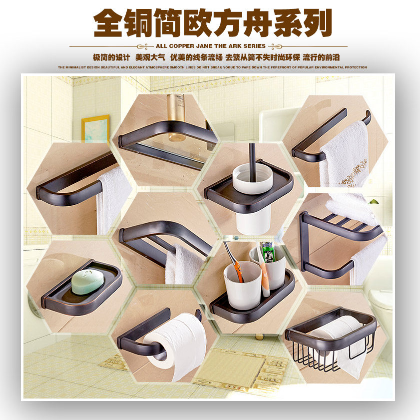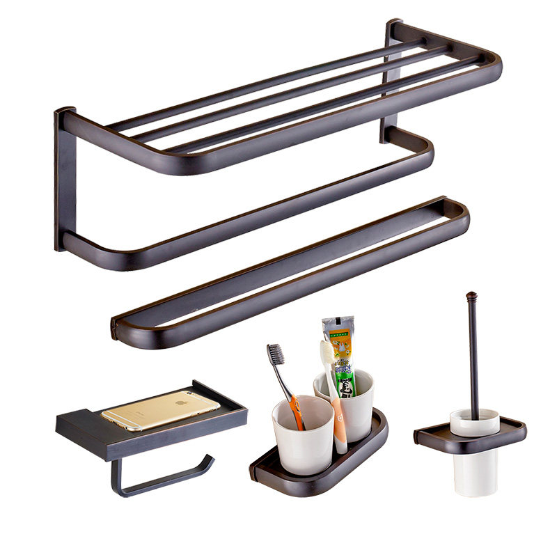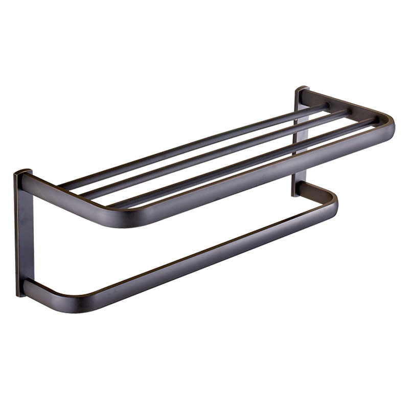 Full copper European and American style black imitation antique salad wool towel rack bath towel rack double shelf bathroom hardware pendant suit