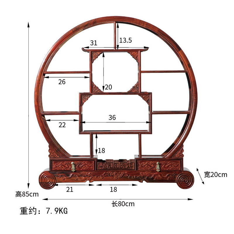 Red Wood Red Acid Branches Antique Round Bogu Frame Solid Wood Chinese Style Craft Gift Hem Decorated Mini Trumpet Boobs Shelf Living-room Hem