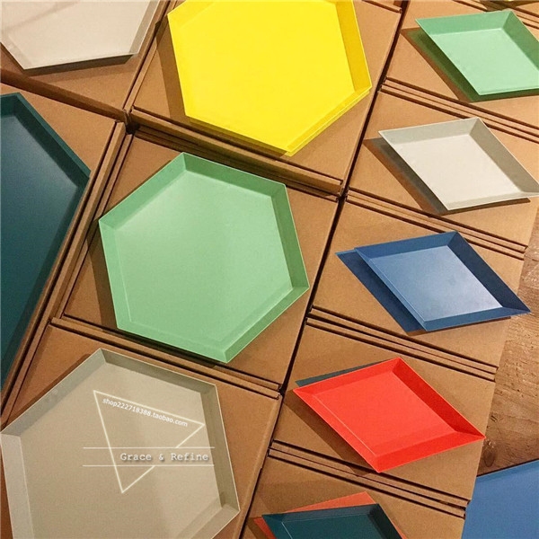 GR ins Nordic home color polygonal metal paint texture decorative geometric tray storage chic