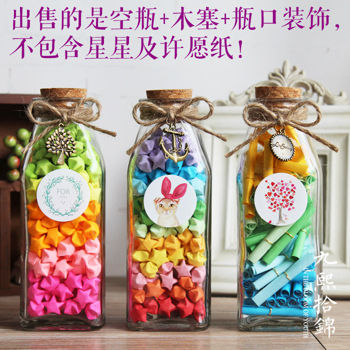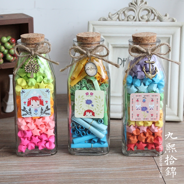 Jiuxi ten Jin Retro Lucky Luck Star Bottle Xu May Wish Glass Bottle Folded Paper Strips Festive Gift Box DIY of Gift