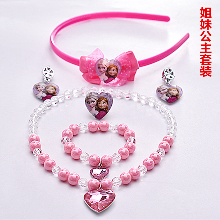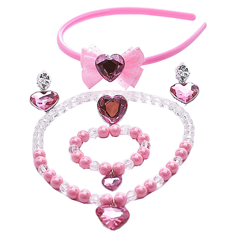 Children Necklace Suit Pink Loving Butterfly Knot Hair Stirrups Handmade Ring Earrings Earrings Ice Chic Rim Male ornament
