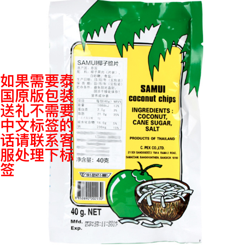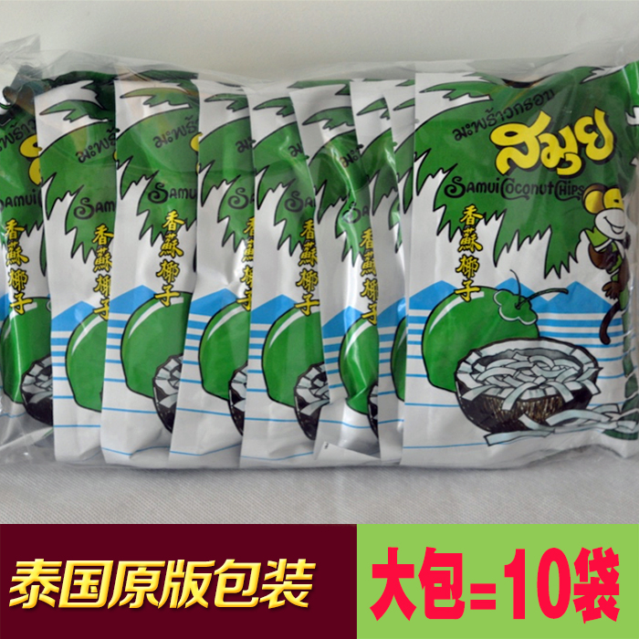 10 bags of Thai specialty Samui coconut flakes 40g crispy coconut shredded Samui original green bag monkey