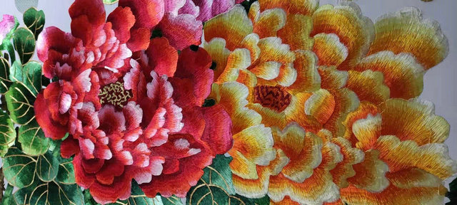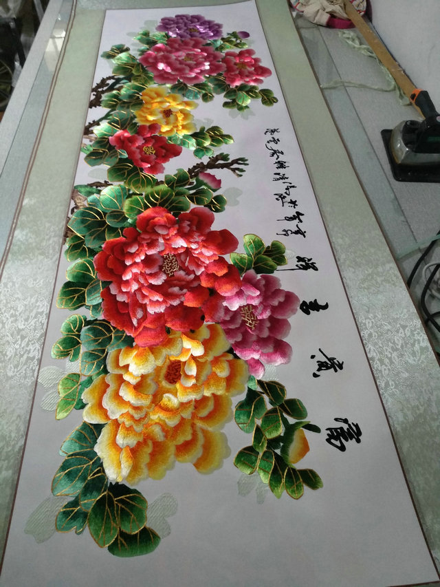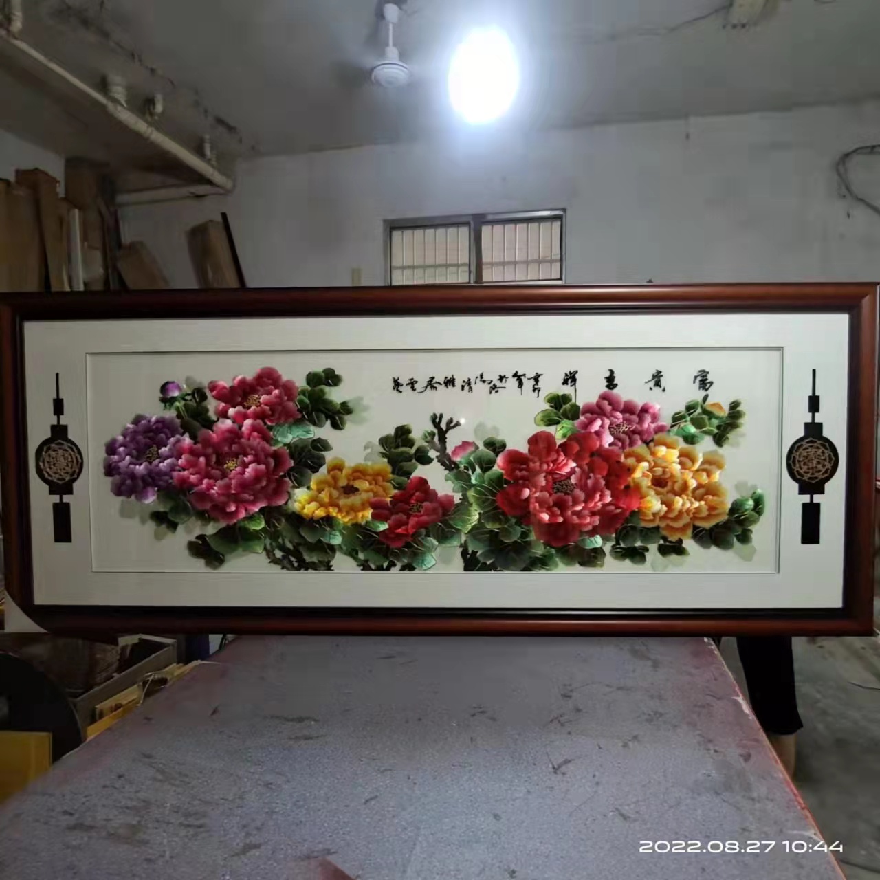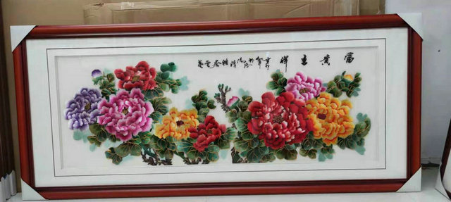 Suzhou Embroidery Machine Embroidery Imitation Handmade Living Room Background Wall Decorative Painting Gift Peony Blooming Wealthy Auspicious Defeng