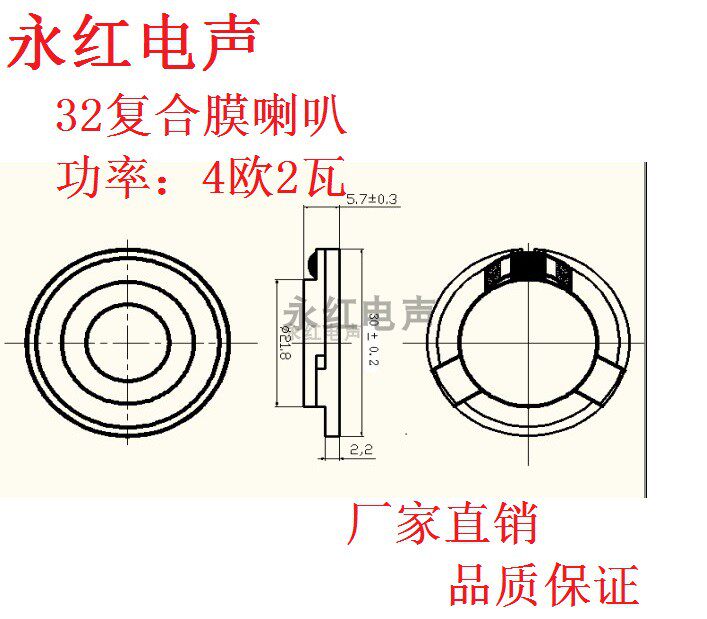 32 composite membrane speaker 4 Euro 8 Euro 2W suitable for driving recorder Bluetooth small speakers and other products round low frequency