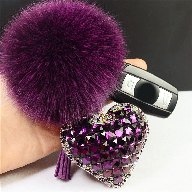 Korea's large crystal fox fox ball car key kyline key chain creative hanging female cute plush