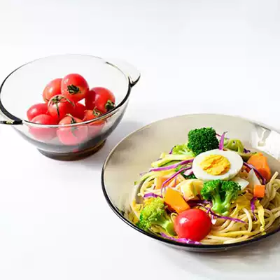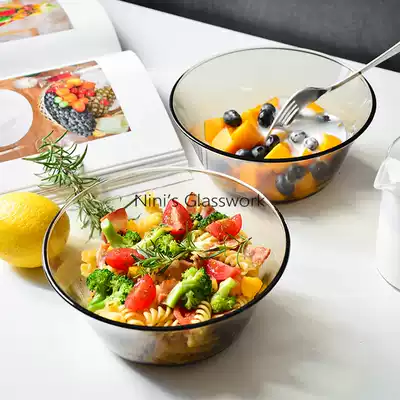 2-piece set of Nordic brown glass tableware dishes set household rice bowl salad cereal instant noodles double-eared soup bowl