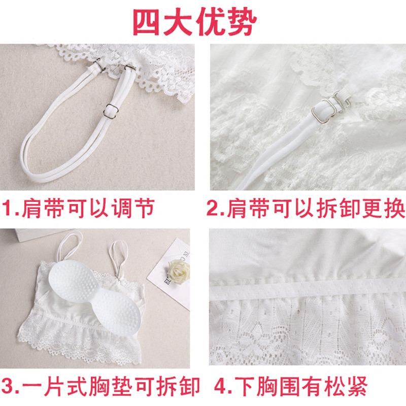 Summer lace base short suspender small vest female anti-go light with chest pad breast bandeau underwear girl bra