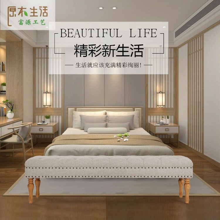 European and American-style bedside boarding end stool solid wood shoe changing stool home fabric sofa stool bench bench bedroom bedside stool
