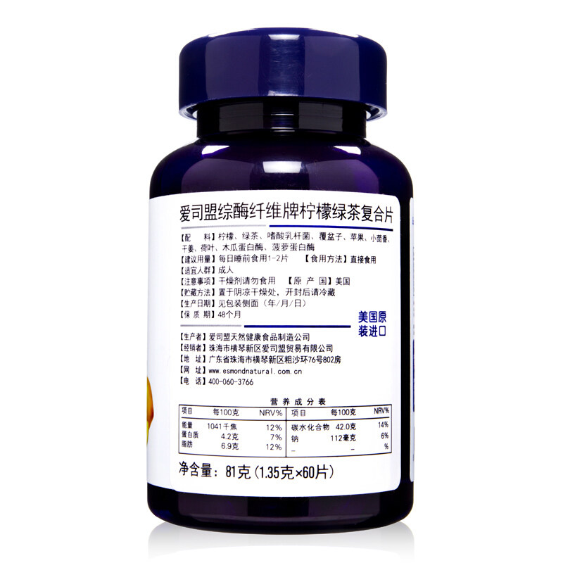 Asimeng United States imported comprehensive enzyme fiber lemon green tea composite tablets Fruit and vegetable enzyme tablets Xiaoyu Enzyme powder