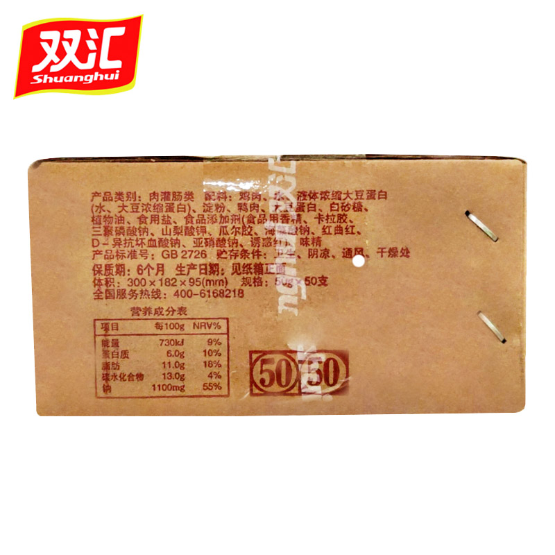 Double tandem Huifu to fire leg sausage starch intestine 2500 grams 50 50 root whole box cooked starch meat sausage breakfast small to eat snacks