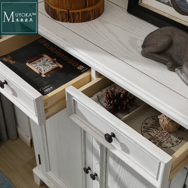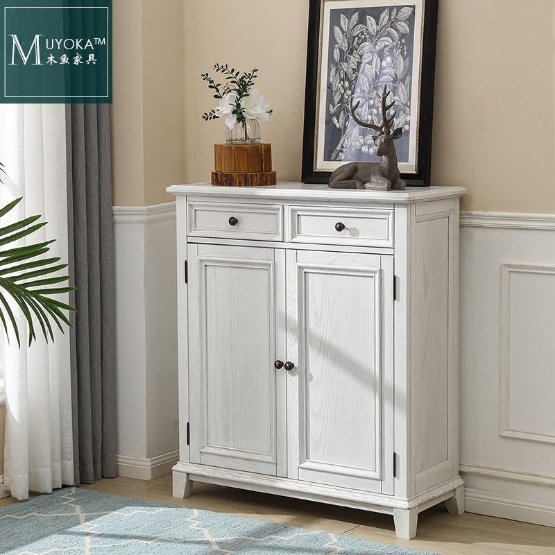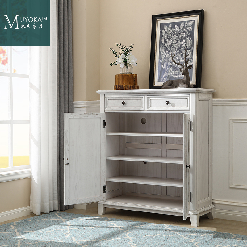 White wax wood American solid wood Double door Shoe cabinet White Hyun Guan Cabinet Nordic Doing Old Brief Yoda Garden Countryside Solid Wood Shoes Cabinet-Taobao