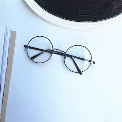 Round glasses frame female Korean version of tide retro Net Red big frame simple personality round face thin metal flat mirror male