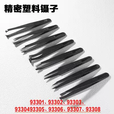 Factory direct anti-static plastic tweezers pointed elbow round head wide mouth flat black carbon fiber tweezers clip