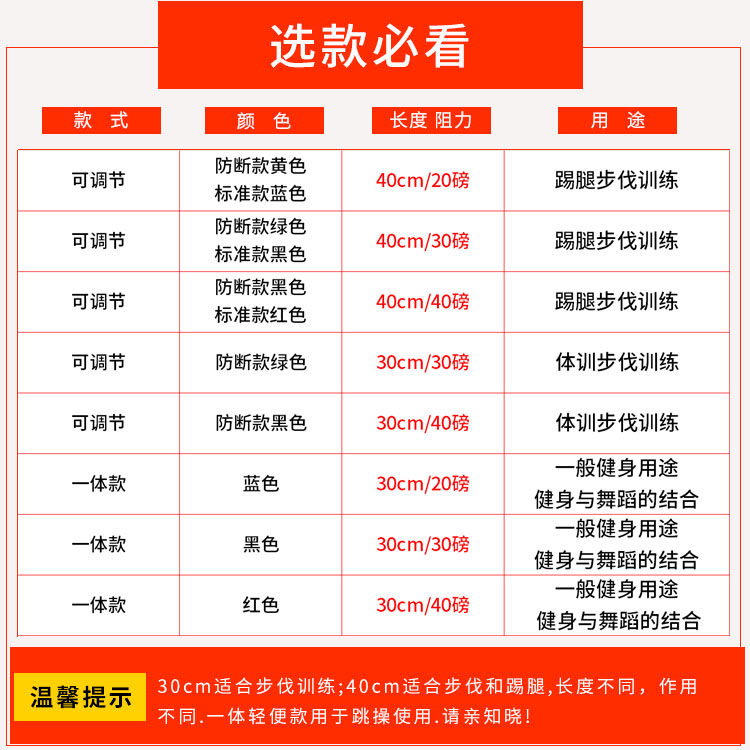 Leg anti-break black 30 cm 40 lbs 2 sets anti-break legs green 30 cm 30 lbs 2 sets legs standard green 50 lbs 2 sets legs standard orange 60 lbs 2 sets legs standard