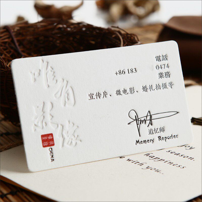 Pure quality cotton paper pressing recessed gravure business card making printing free design high-end personal individuality rugged business card printing