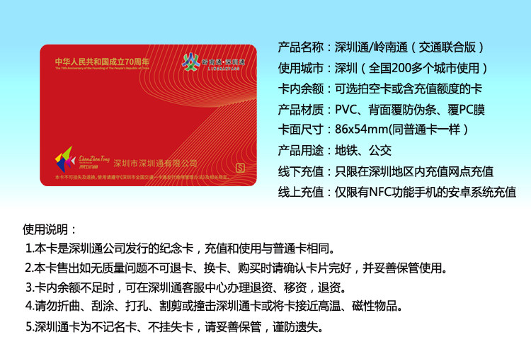 Shenzhen TongLingnan Communications Joint Edition Card 70 Anniversary Card (National One Cartoon)