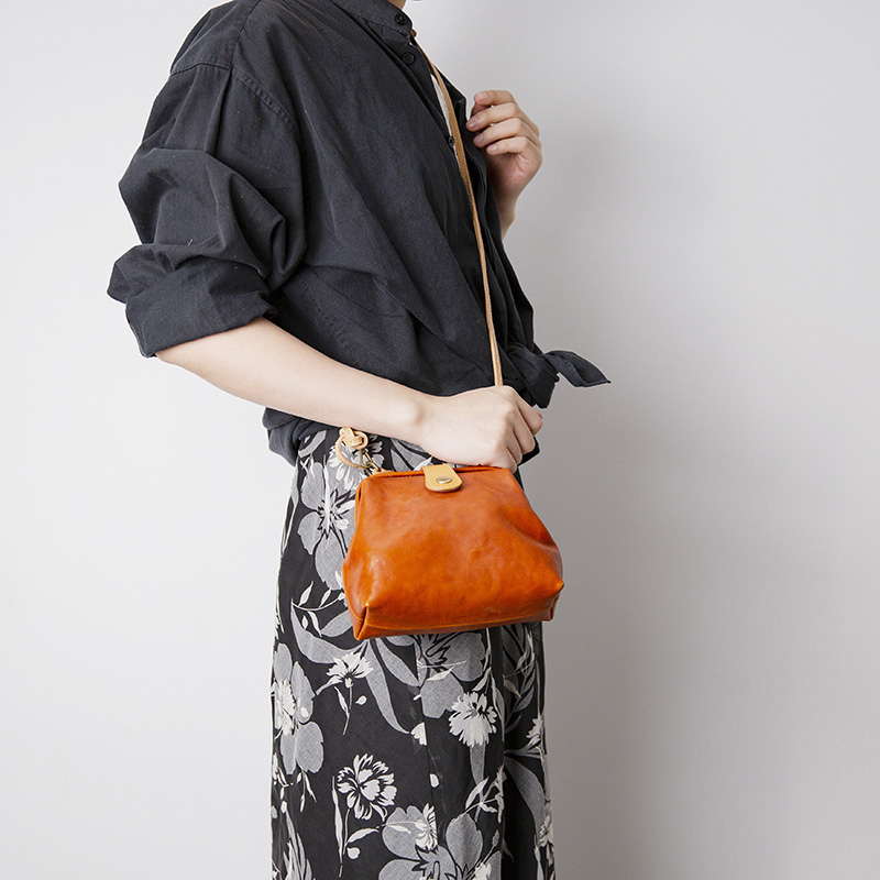 JUUZ LAN women's bag summer genuine leather mini packet headlining cow leather mouth gold bag single shoulder inclined satchel bag doctor bag