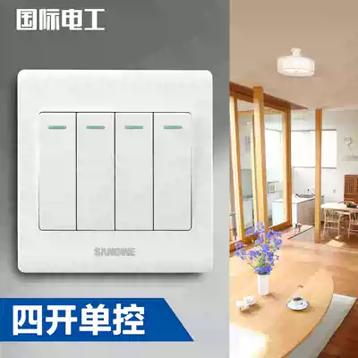 International electrician white concealed household 86 wall socket panel 4 four-position four-control four-joint four-open single control switch