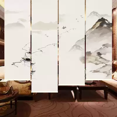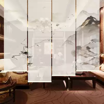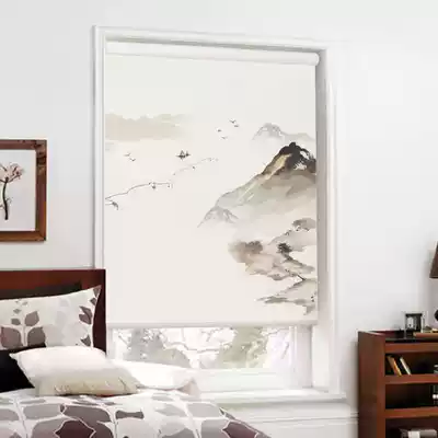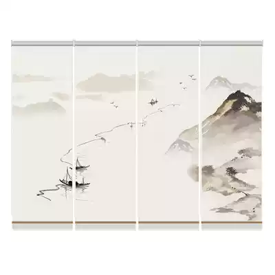 Modern Chinese ink Jiangnan screen partition shading insulation living room balcony retro landscape mood roller curtain