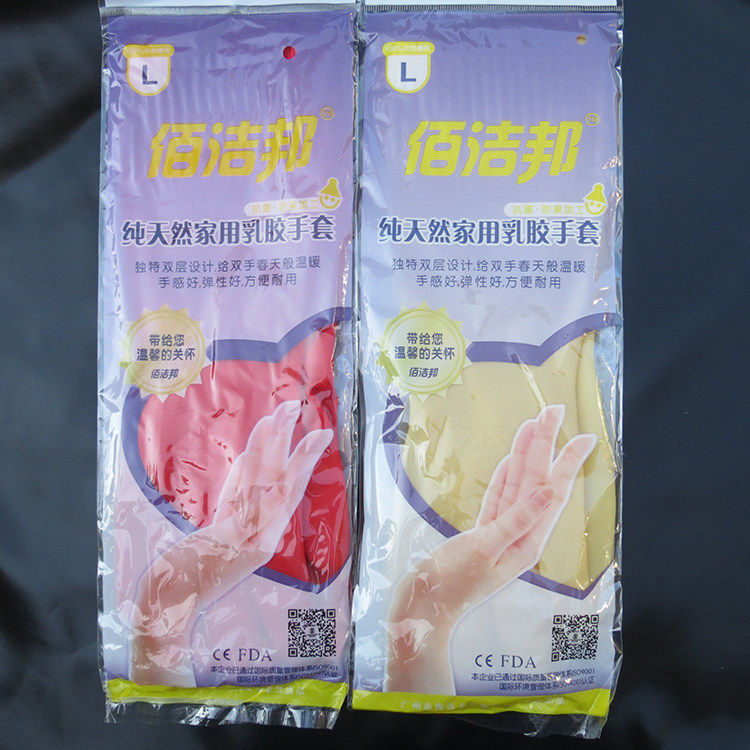 Baijiebang pure natural latex gloves extended household non-slip kitchen dishwashing protective gloves rubber plastic gloves