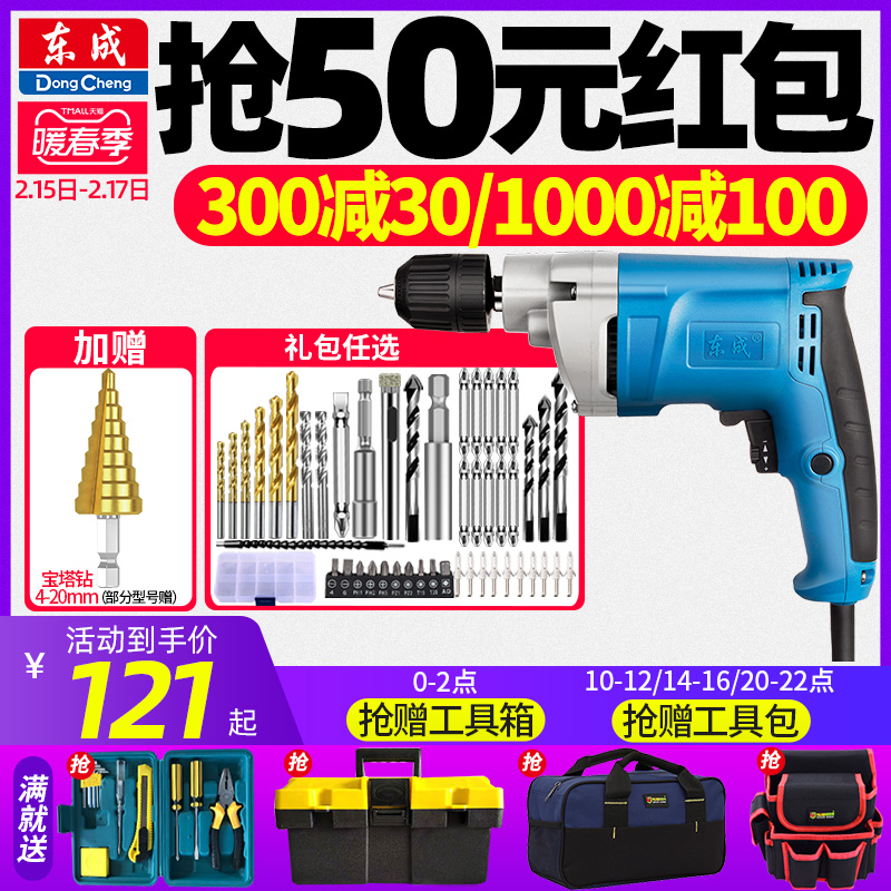 Dongcheng hand drill multi-function electric screwdriver tool small flashlight turn drill home 220V Dongcheng pistol drill
