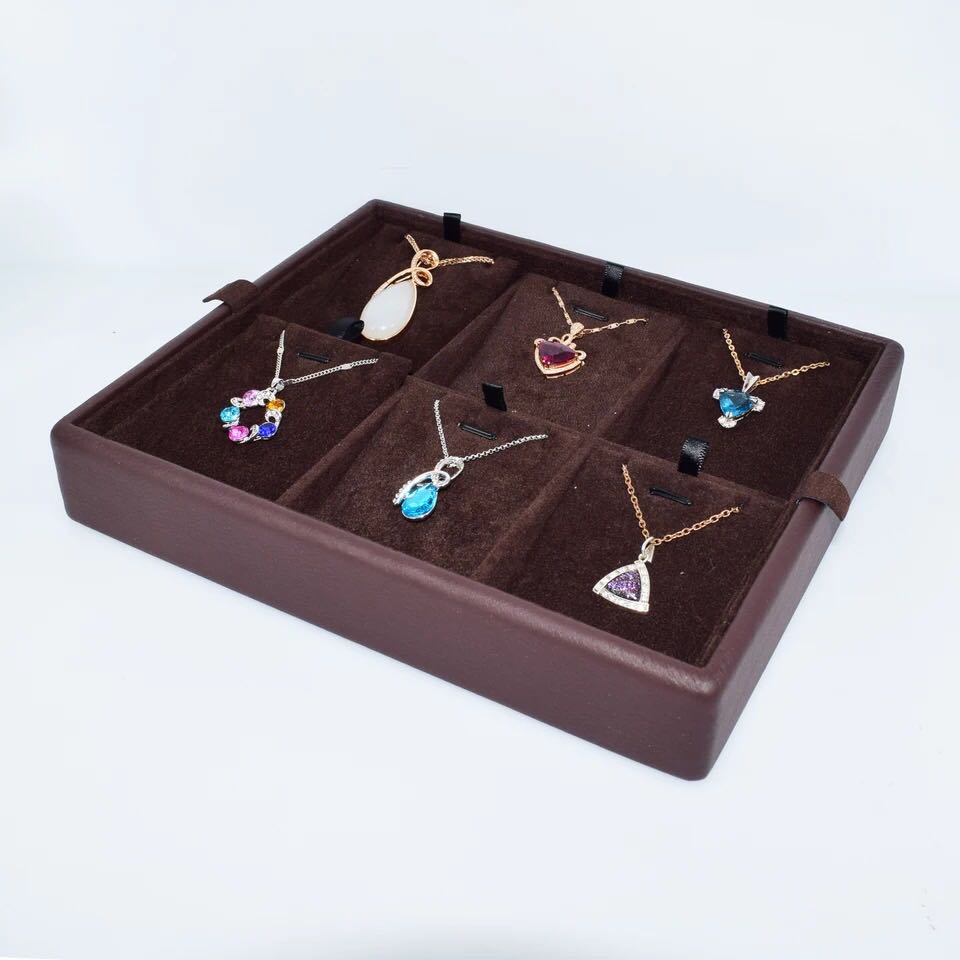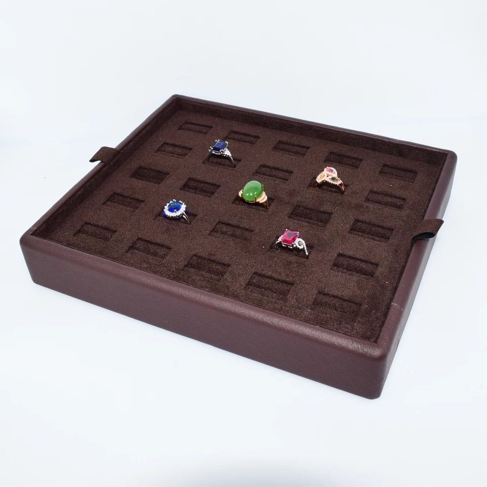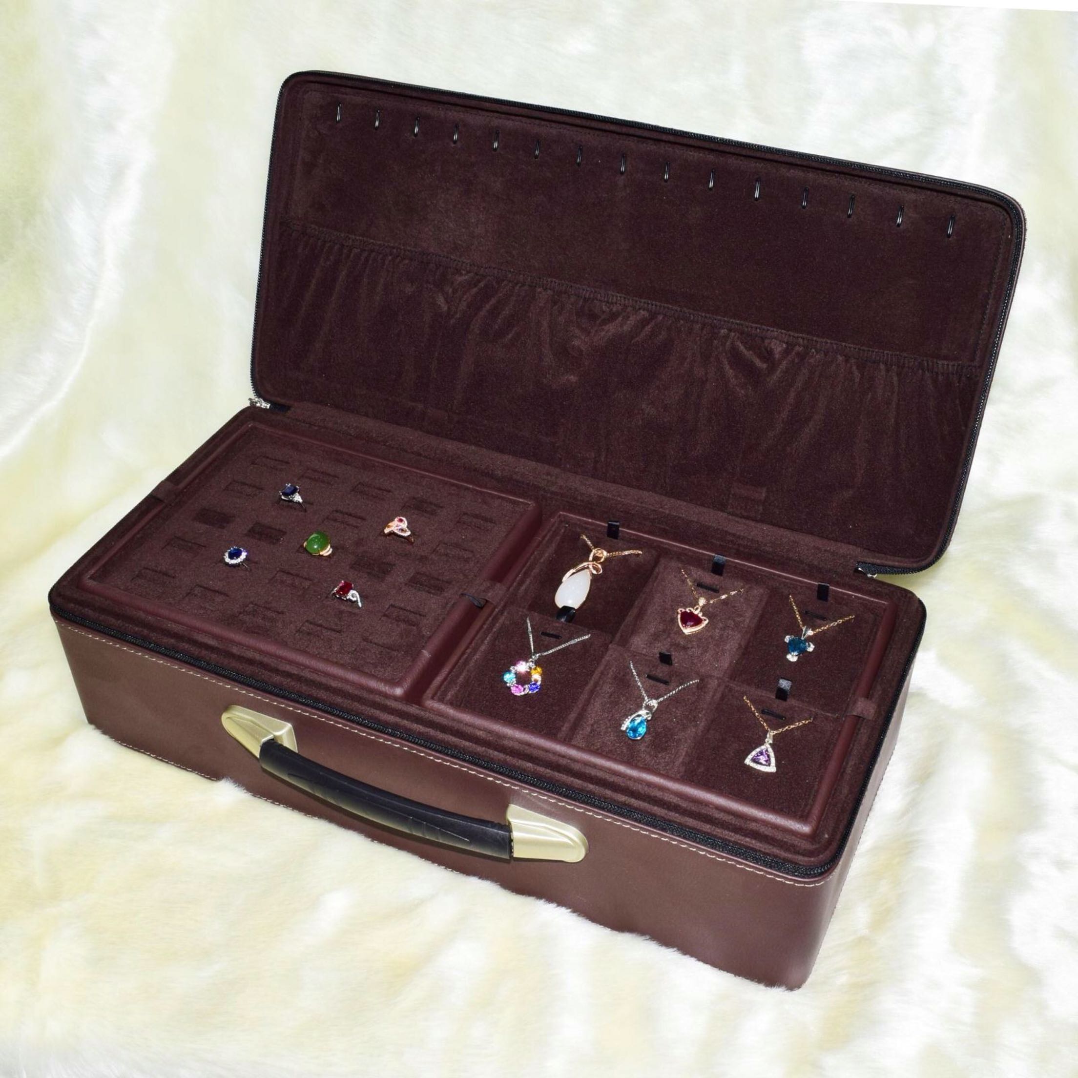 Coffee-colored velvet jewelry suitcase jewelry exhibition will carry six-layer tray ring pendant bracelet display box large
