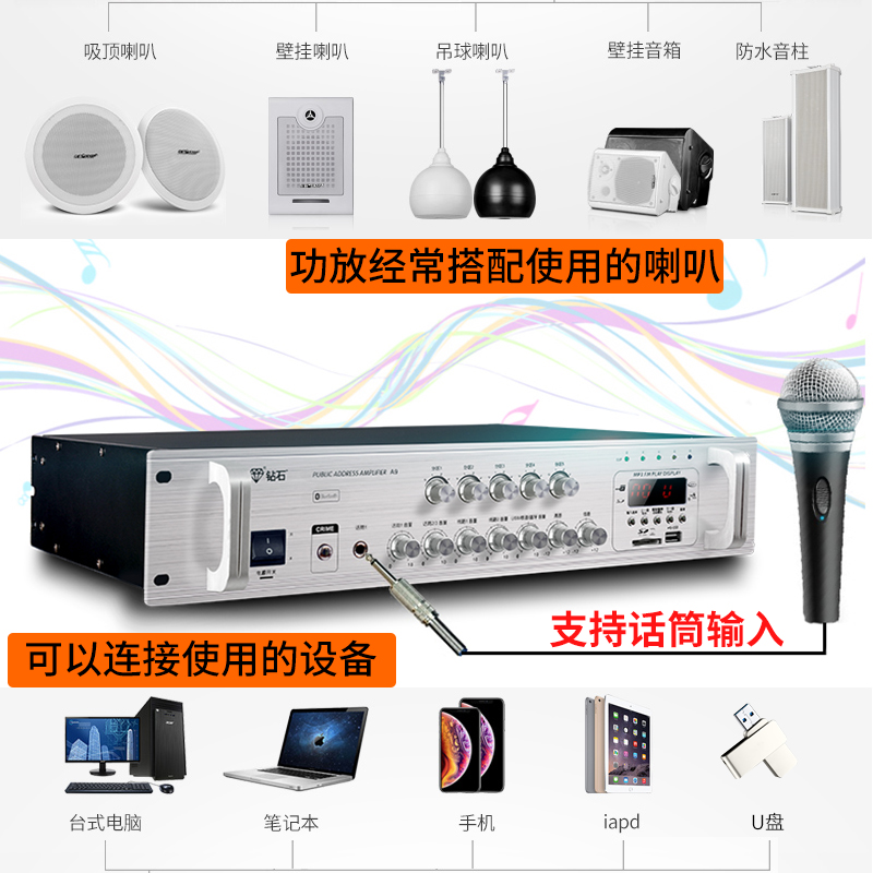 Diamond A20 constant voltage amplifier High power shop background music Public broadcast Bluetooth partition professional amplifier