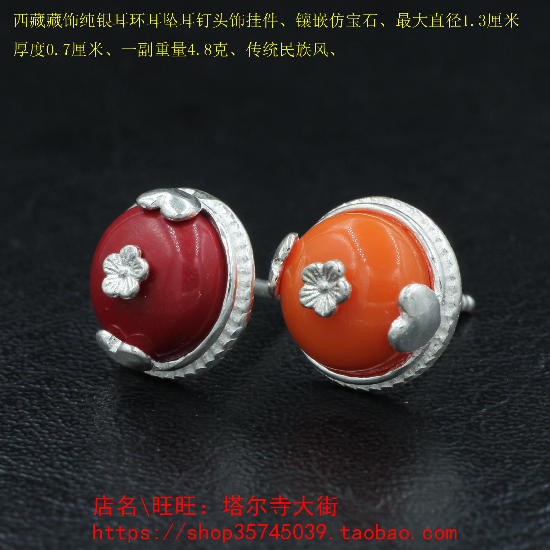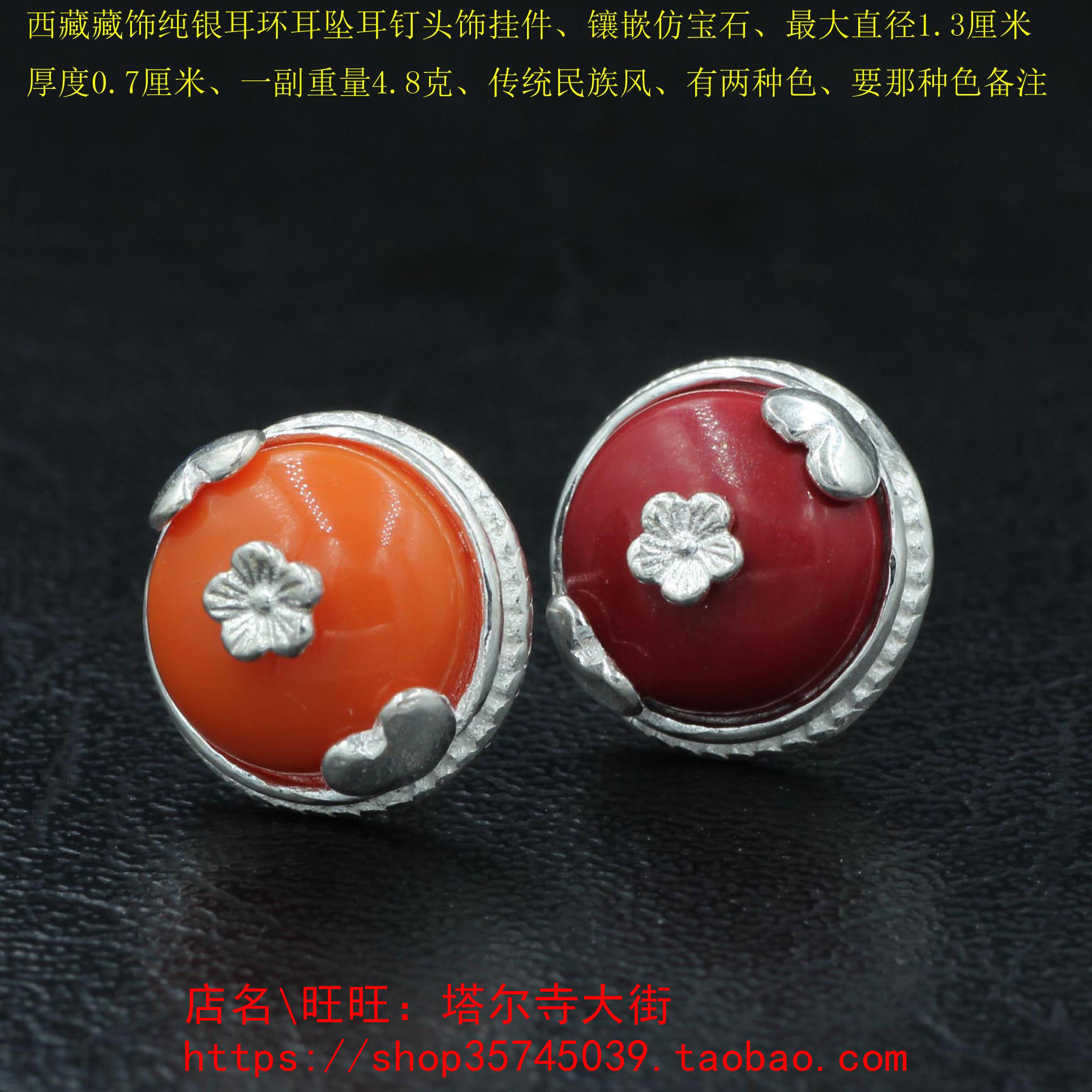 Tibetan pure silver earrings earbuckle tumble headdress set with simulated gems hidden style